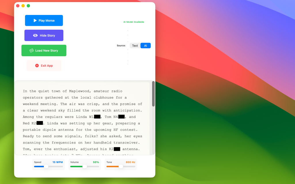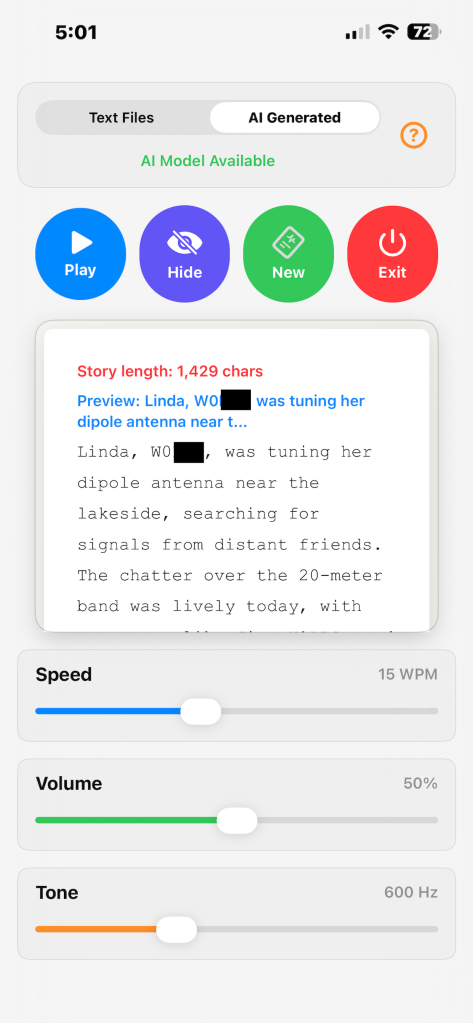 MorseMessenger uses artificial intelligence to generate unlimited amateur radio stories, making learning engaging, practical, and effective.